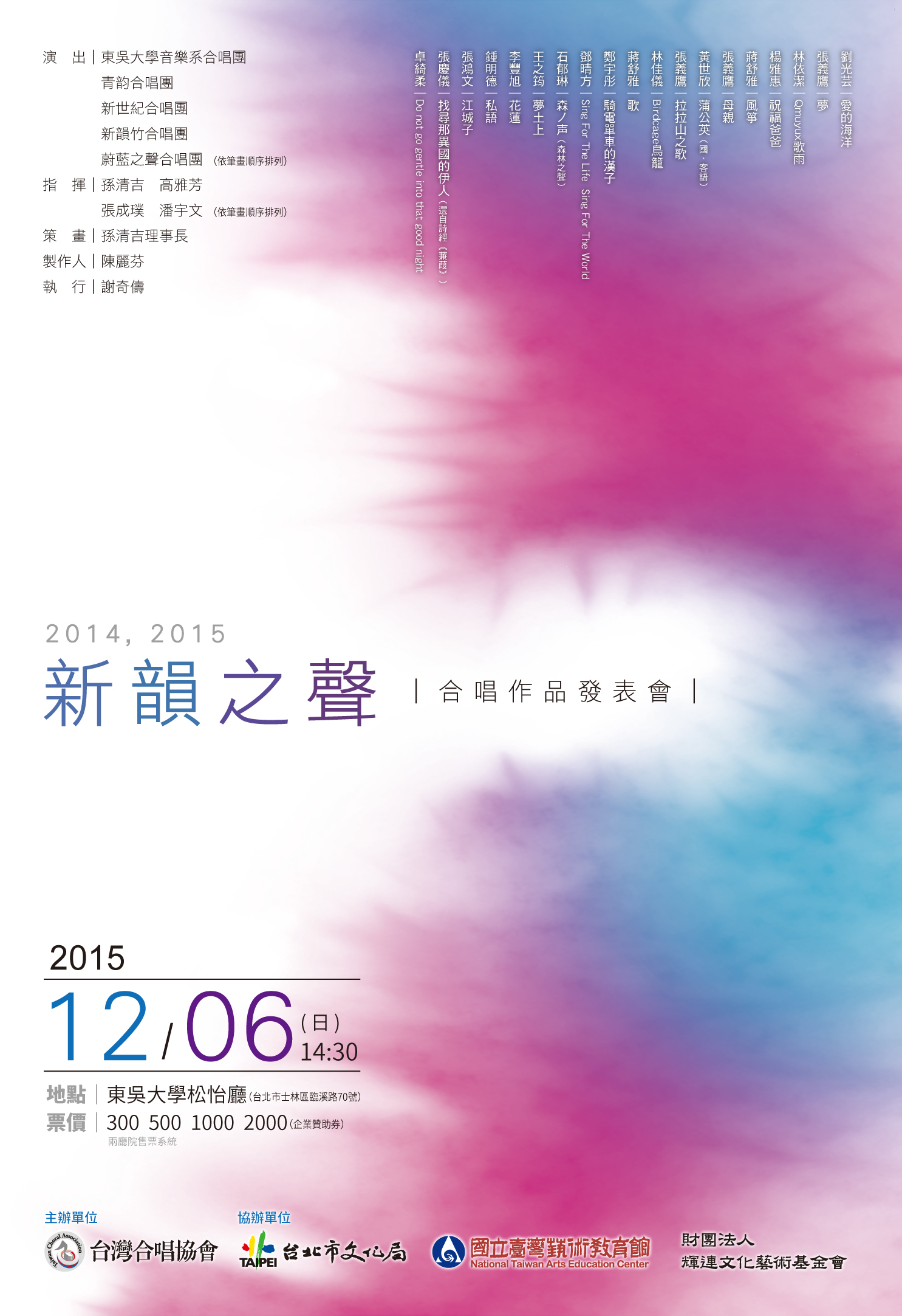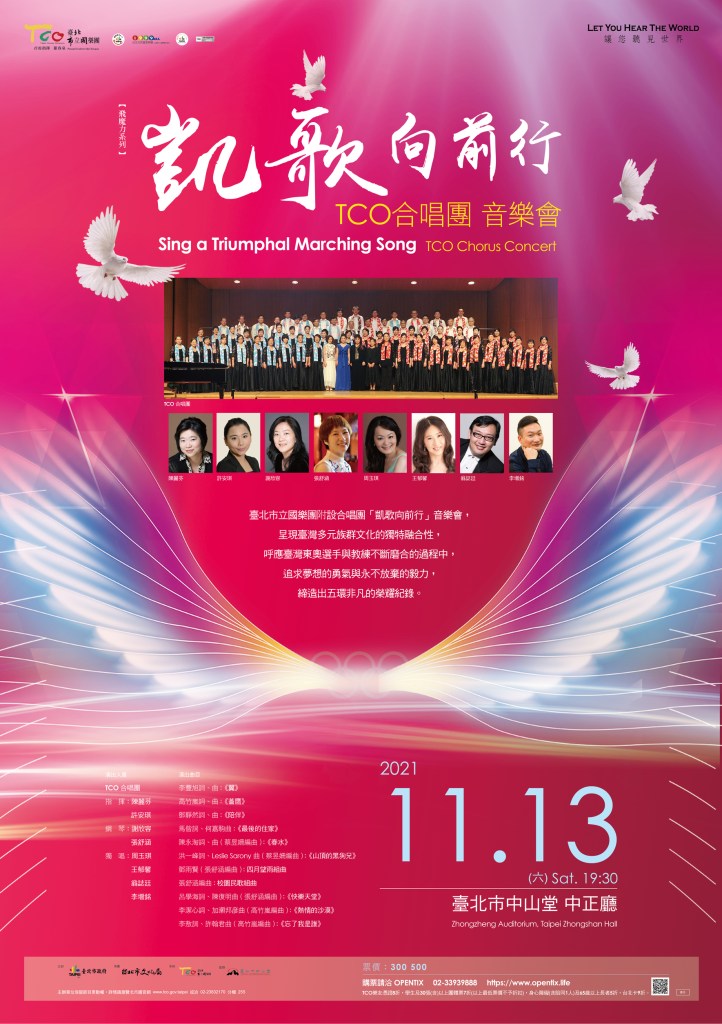 It is my pleasure to see conductor Li-Fen Chen and Tabernacle Women’s Choir will perform my choir piece A Pair of Wings again on August 21 at 7:30pm at Playhouse of National Taichung Theater. I am glad to see this newly arrangement for 3-part chorus and piano could be performed again (originally, this piece is the third movement from my The Flight Log for mixed chorus and piano). Also, currently I am on leave in Taiwan now, and plan to attend this concert as well. It is always good for composers to find their pieces are on stage, especially having a wonderful performance.