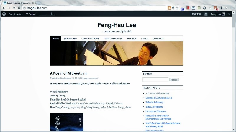今天我把這個個人網站的版型換新的了。從2011年三月的第一個版型出現之後,這是第二次的更新,第二個版型是Splendio Theme。這個主題有比較寬的欄位,有設計感的線條,字型也清楚易讀,還有可以隨機更換的封面照片。我已經上載了從Photo頁面中挑選出來三張不同的封面照片,將會隨機出現在這個個人網站的首頁裡。